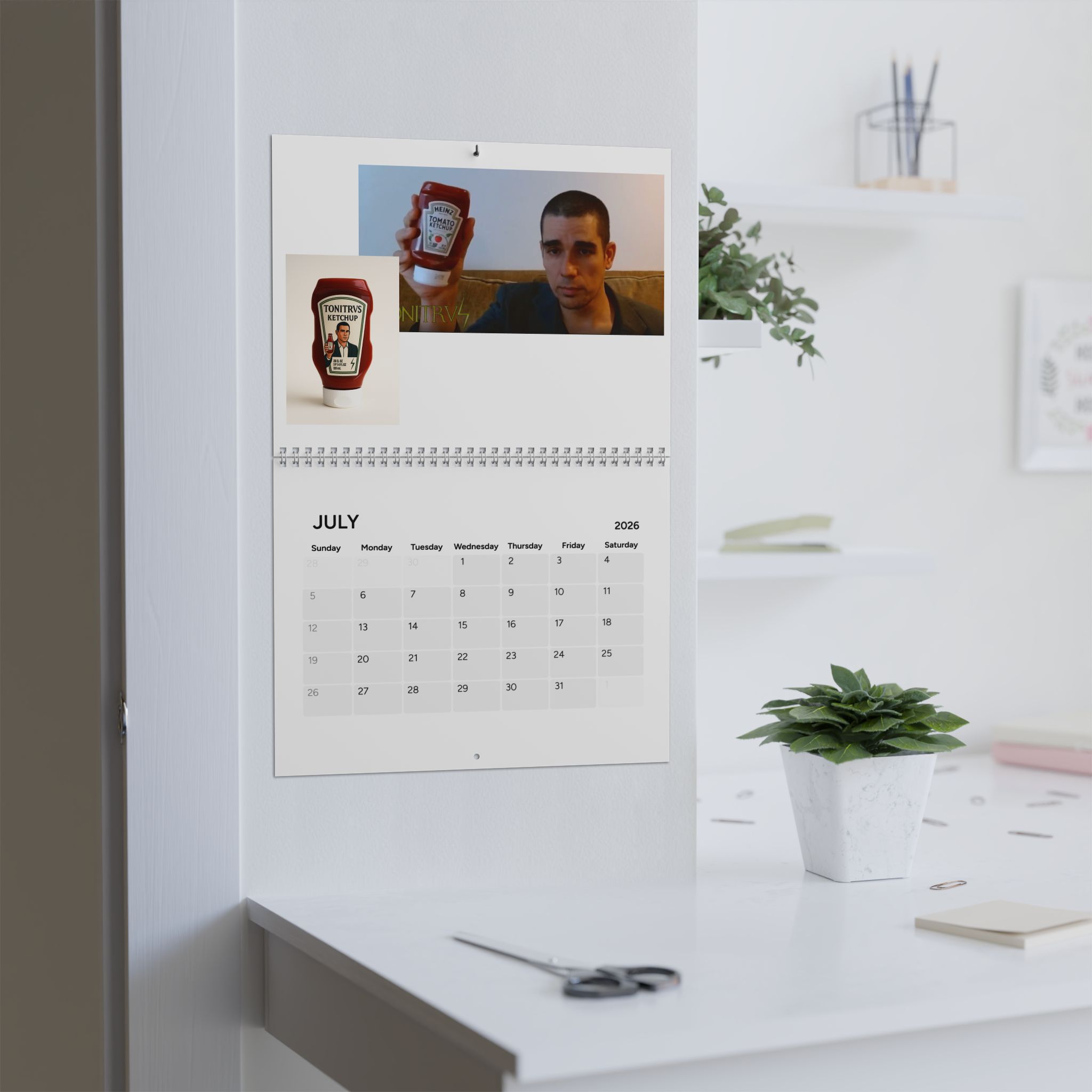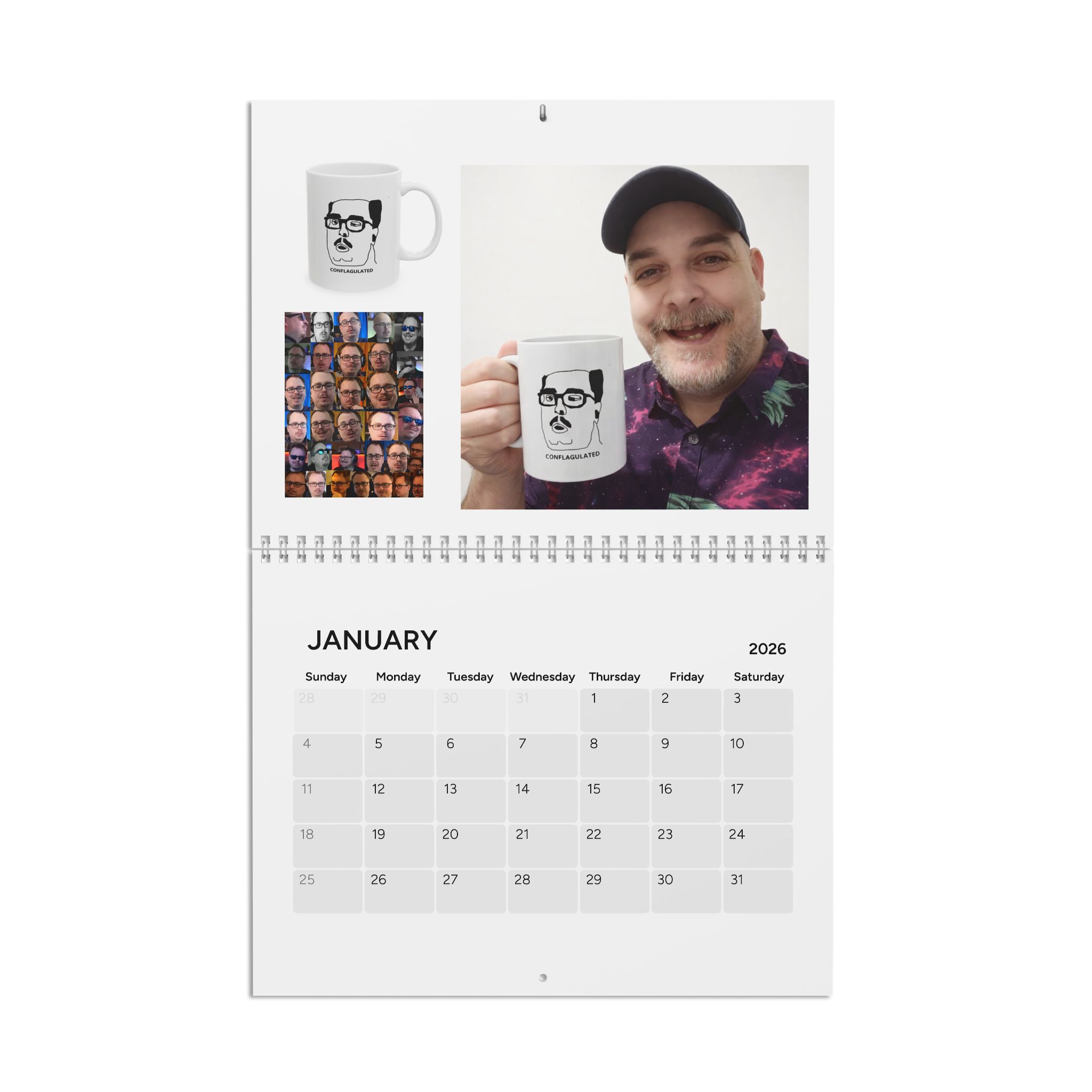 ng of each month, this custom calendar (2026) is here to add an uplifting touch to any wall. Available in one size (10.8″ by 8.4″), each calendar comes with top-tier quality paper (270gsm) with a semi-glossy finish. Comes with centered drill holes for effortless hanging, 3/8″ silver wire binding, and large image printing for each month.
